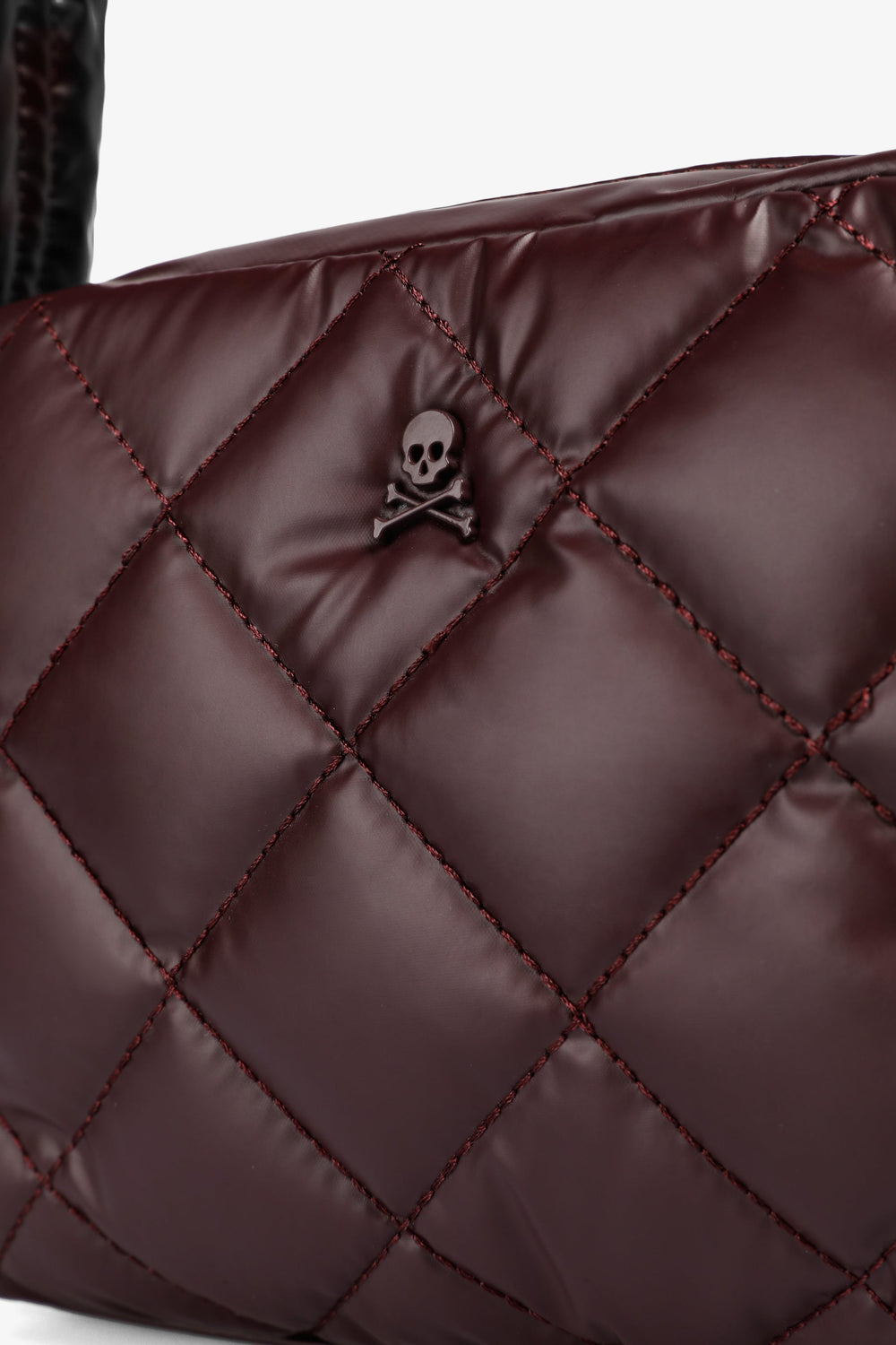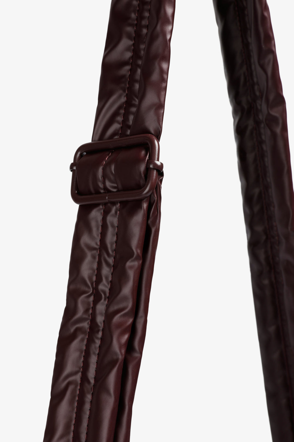PU crossbody bag. Padded and metallic. Inner lining and zipped pocket. Zip fastening. Adjustable strap. Rubberised logo detail on the front.