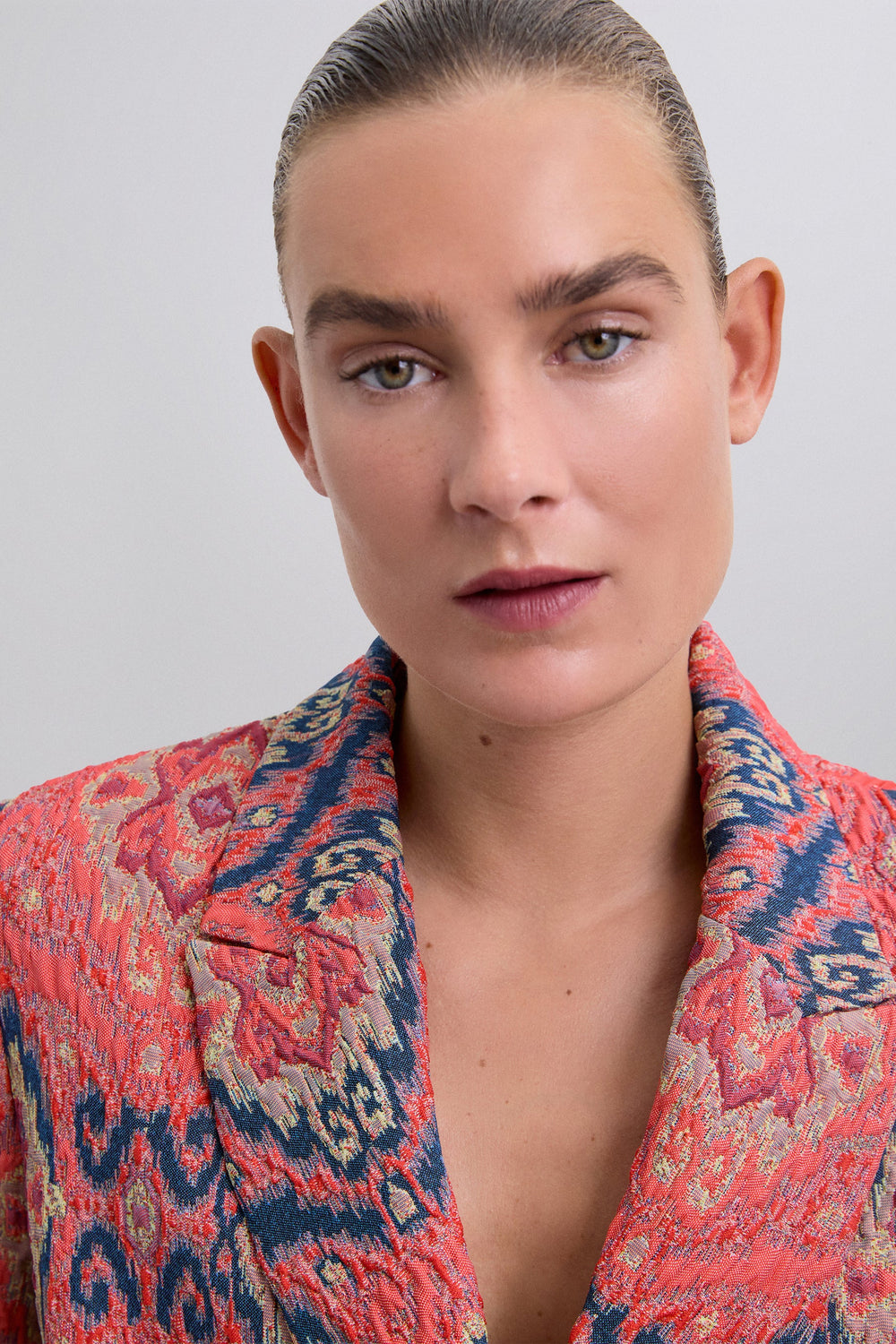Blazer with jacquard print. Regular fit. Lapel collar. Button fastening. Long sleeves and side pockets. Cuffs with button fastening.
