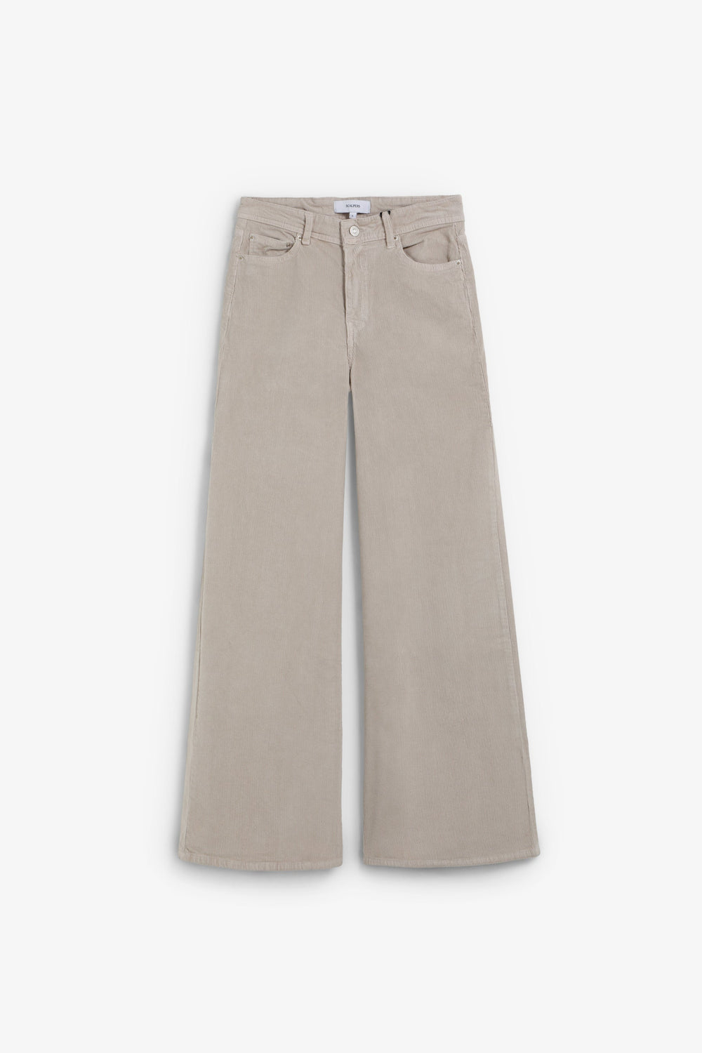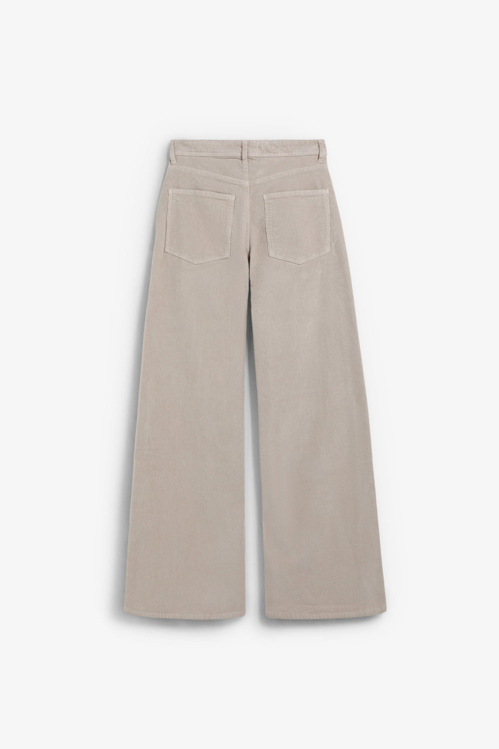 Trousers made of a cotton blend. Mid-rise and straight cut. Zip and button fastening. Front and back pockets.