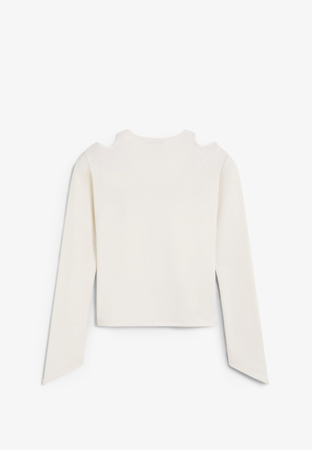 T-shirt made of cotton. Long sleeves with asymmetric finish. Round neck. Shoulder slits.