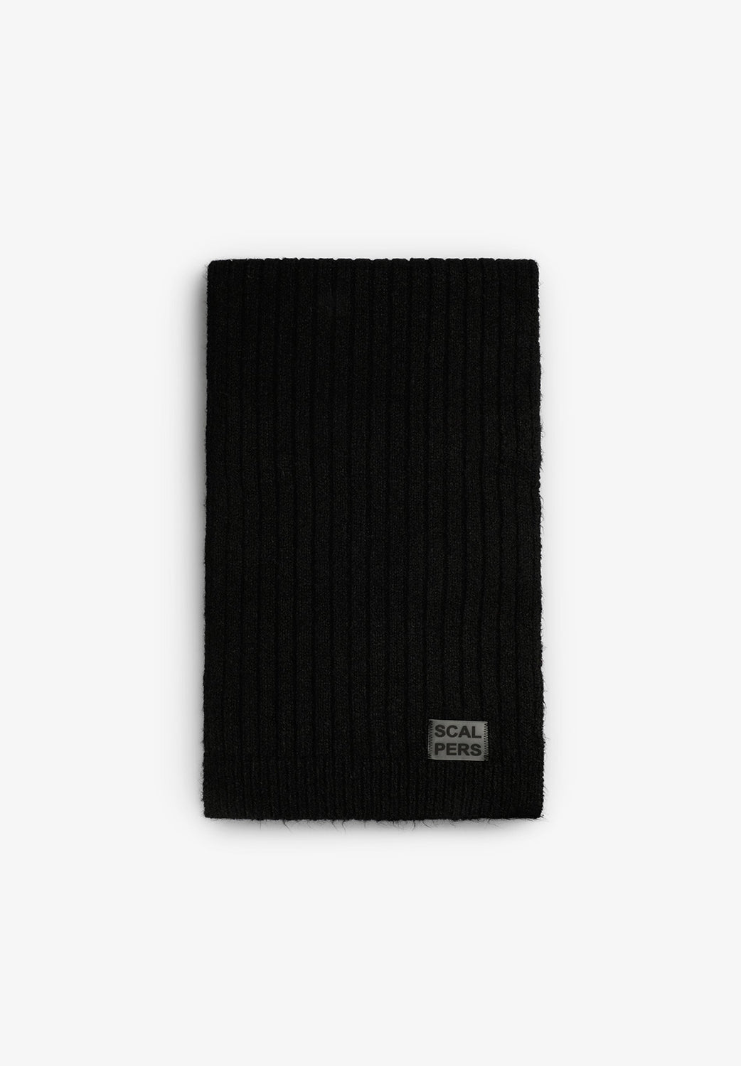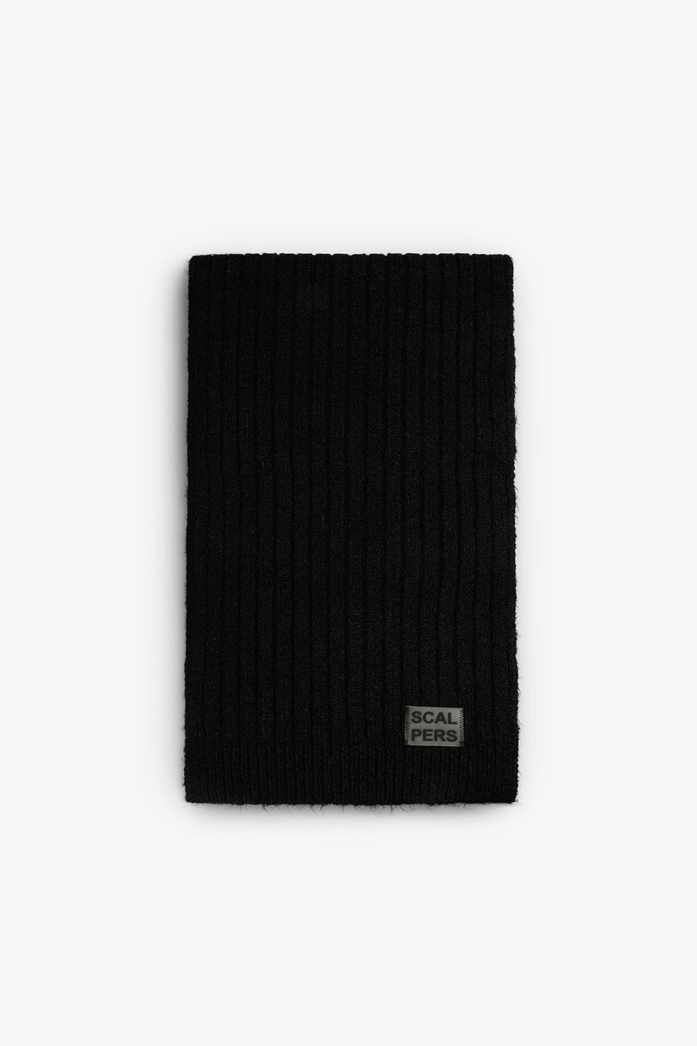 Scarf made of a wool blend. Ribbed details. Logo patch.
