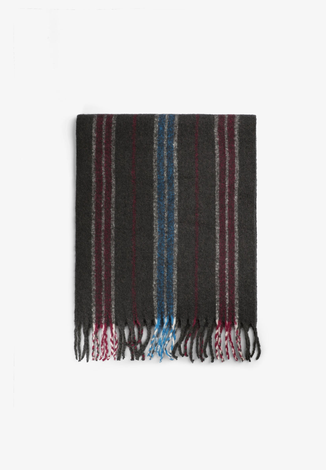 Scarf made of a wool blend. Contrast stripe print. Label detail.