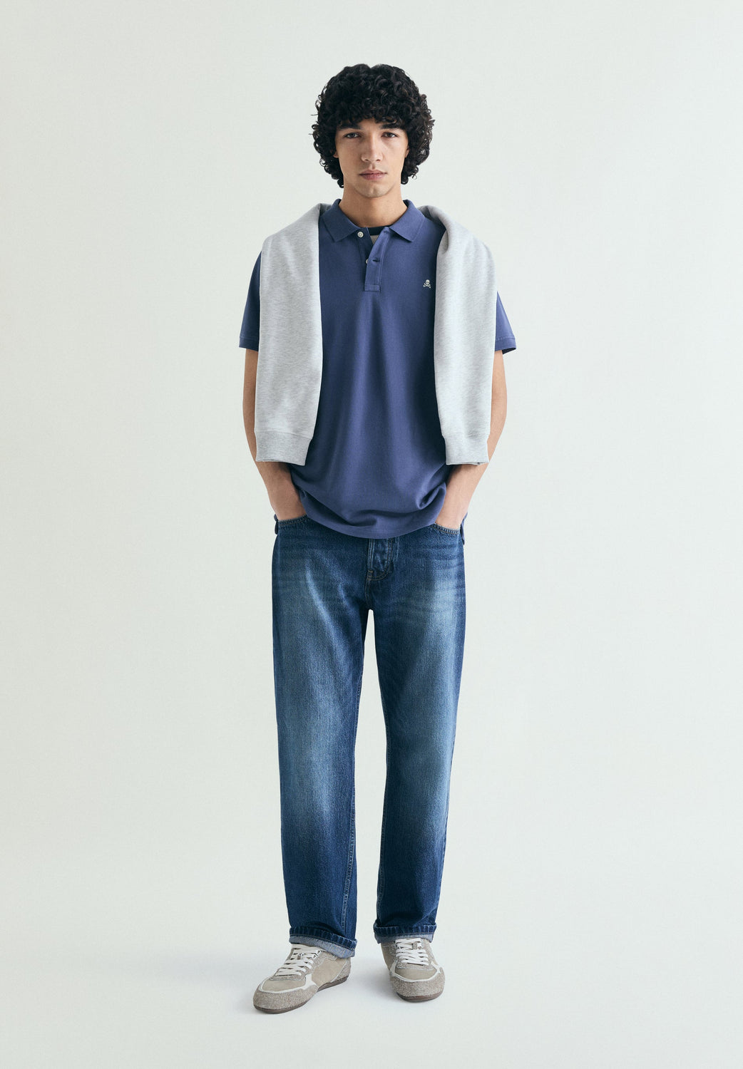 Polo shirt in 100% BCI cotton. Regular Fit. Polo shirt collar with buttons. Short sleeve. Faded effect. Embroidered contrast skull on the chest. Ribbed trim.