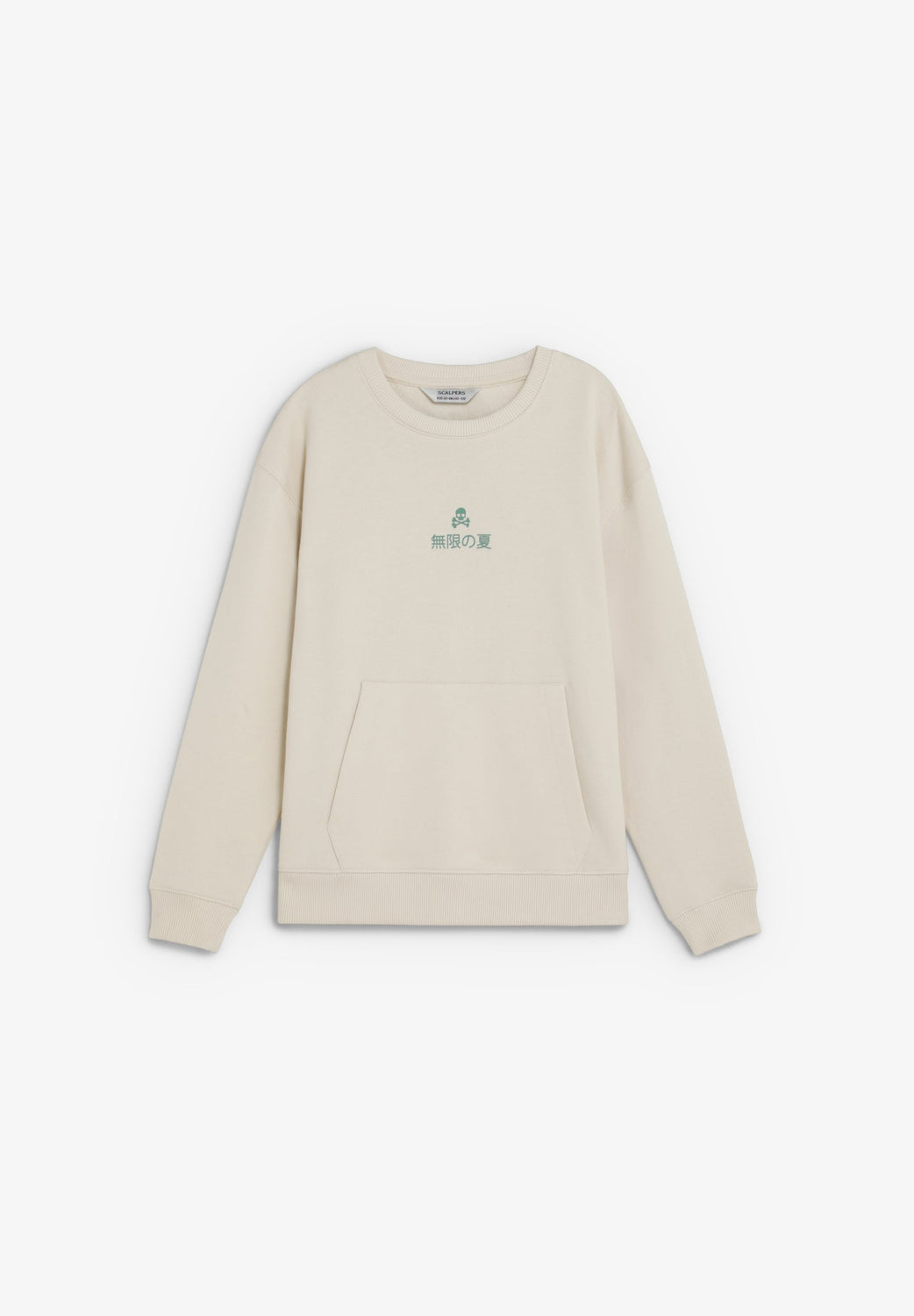 Sweatshirt made of 100% BCI cotton. Regular Fit. Round neck and long sleeves. Front embroidered details and pouch pocket. Back print. Ribbed trim on collar, cuffs and hem.