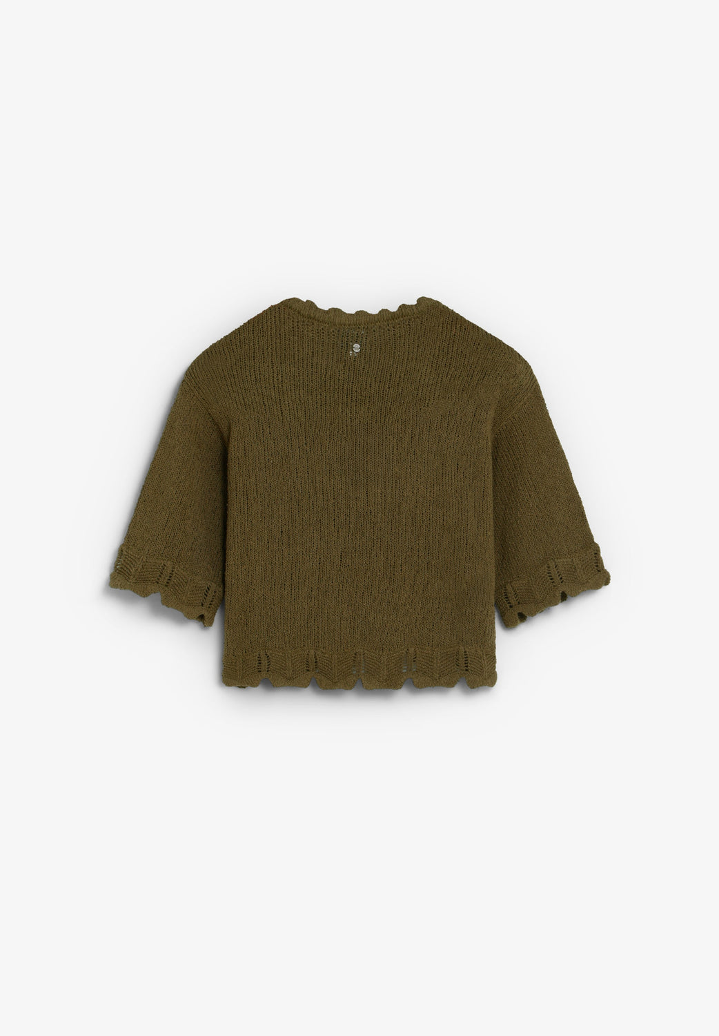 Sweater made of 100% cotton. Cropped, regular fit. Round neck and short sleeves. Openwork detail and wavy detailing on sleeves and hem.