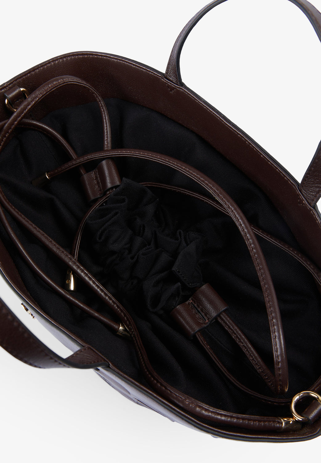 Bag made of 100% leather. Raised geometric design. Short double handle. Cotton lining.