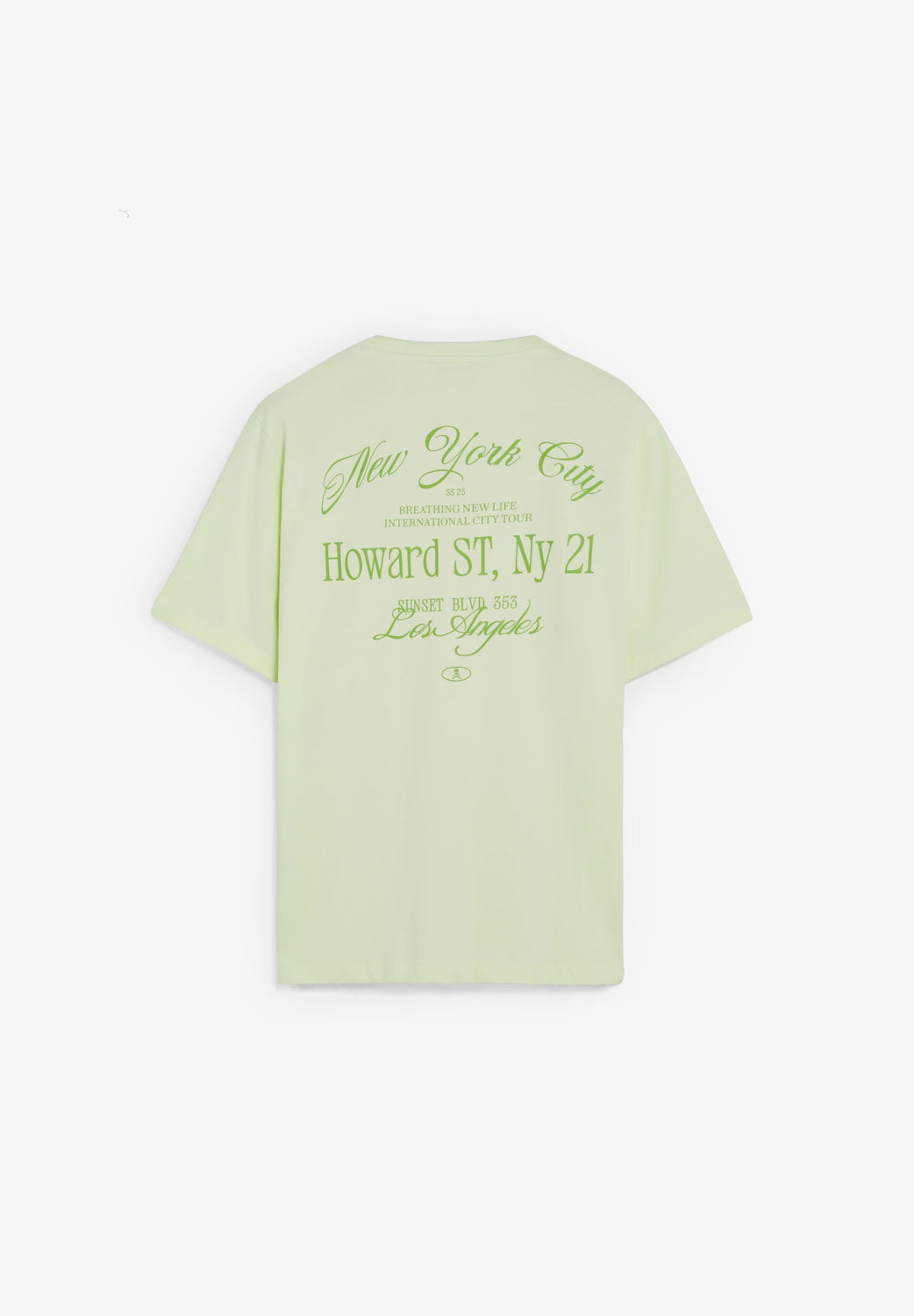 T-shirt made of 100% BCI cotton. Relaxed fit Round neck and short sleeves. Faded effect. Back print and embroidered detail on the chest.