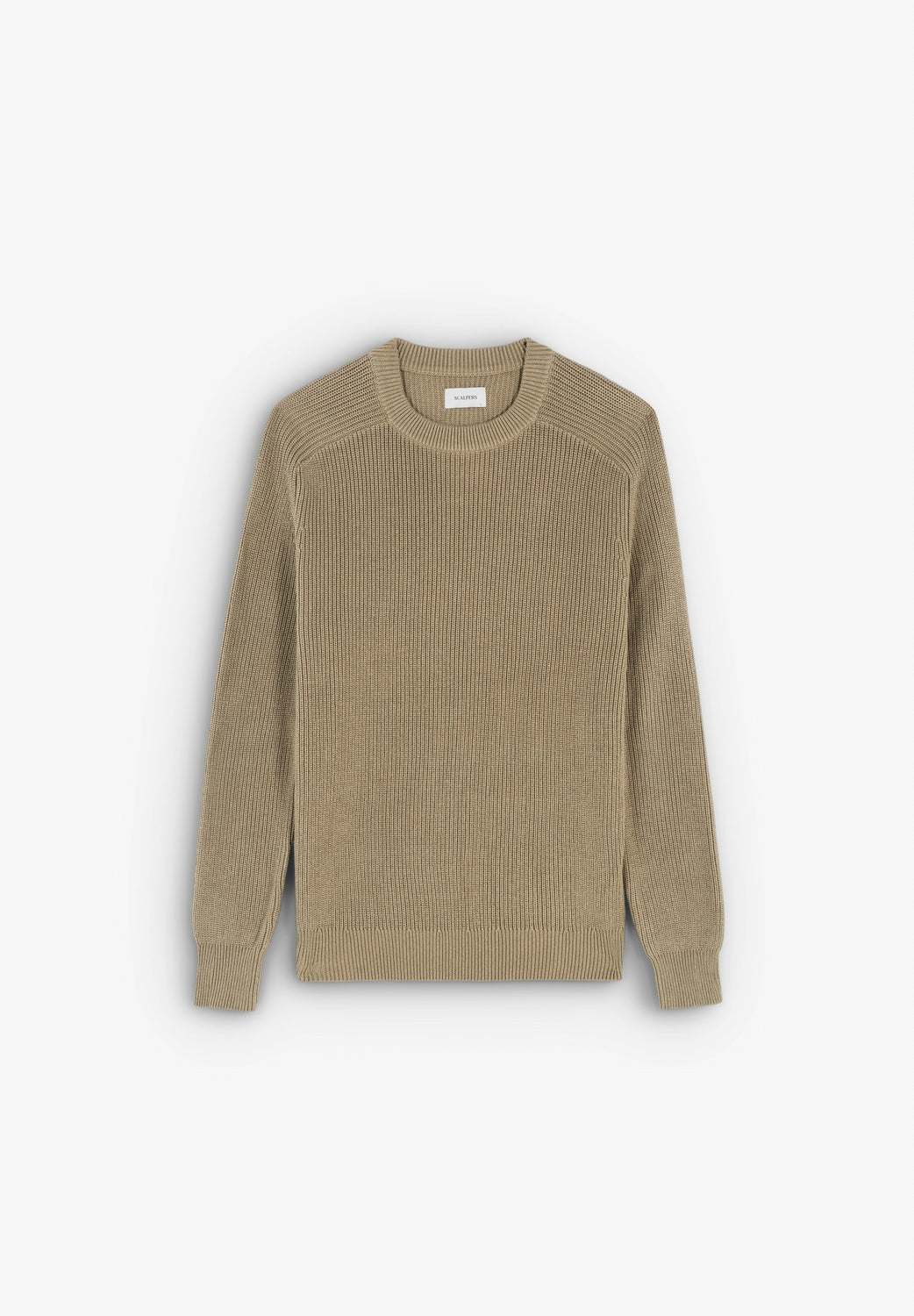 Knit sweater made of 100% cotton. Round neck and long sleeves. Ribbed trim.