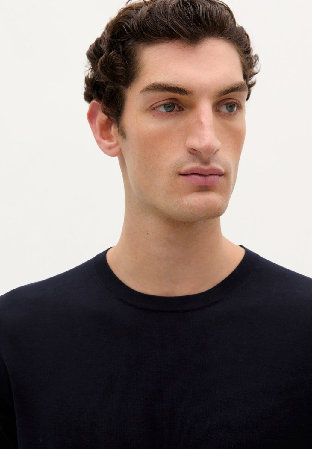 T-shirt made from a blend of cotton, linen and silk. Regular fit. Short Sleeve. Ribbed trim on collar.