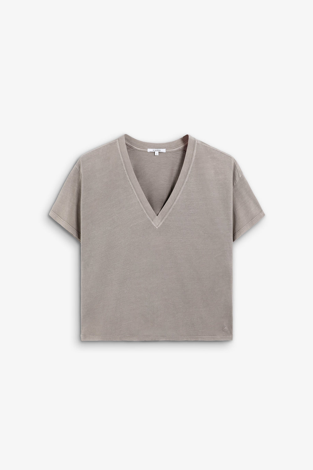 Basic T-shirt made of 100% organic cotton. Regular fit, V-neck and short sleeves. Embroidered logo detail at the lower front.