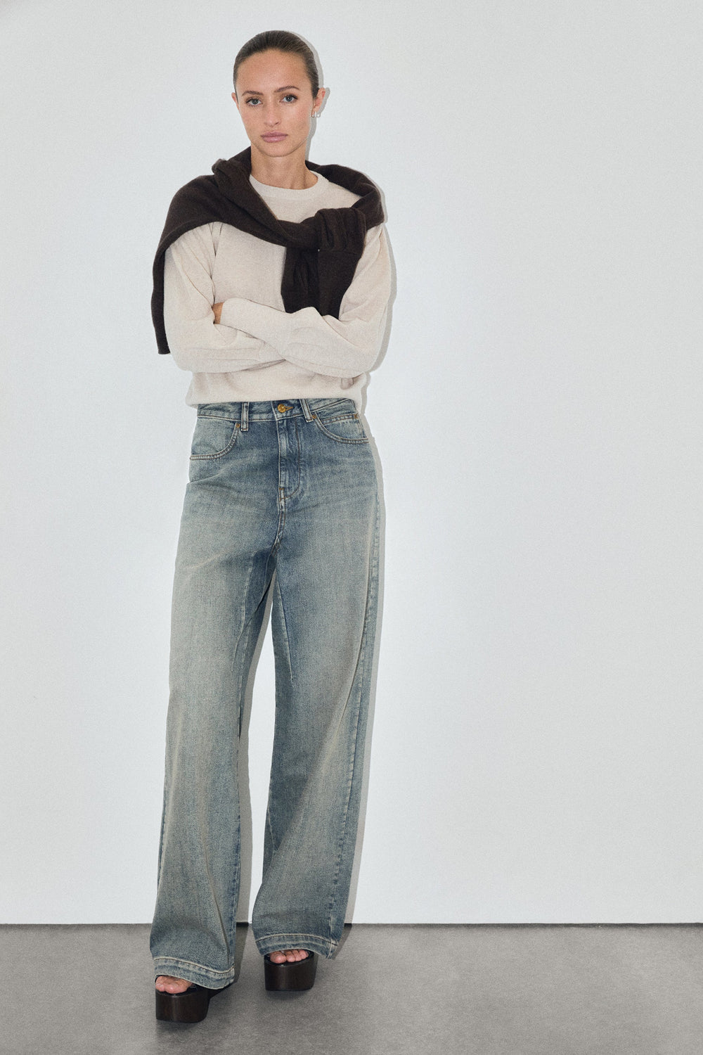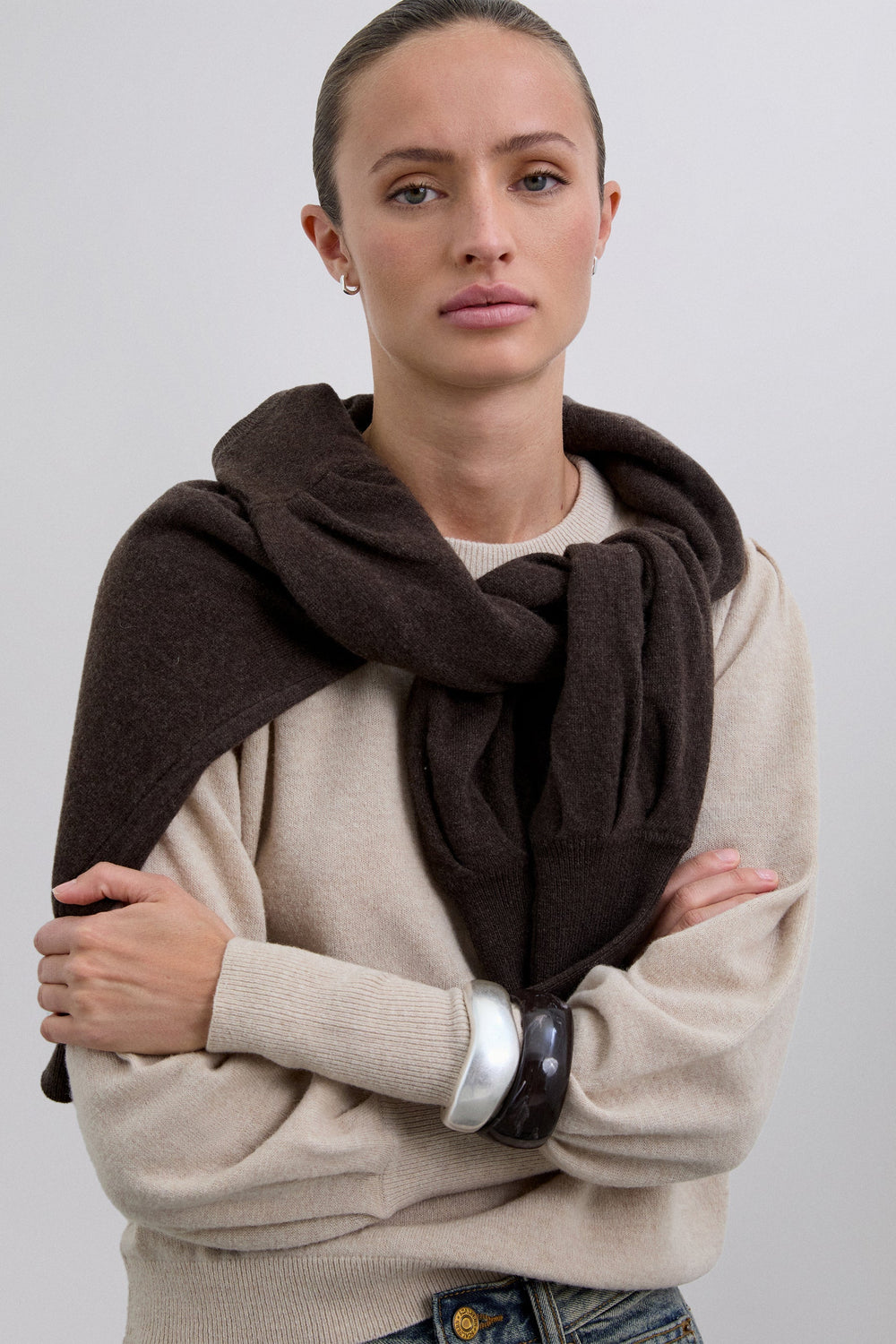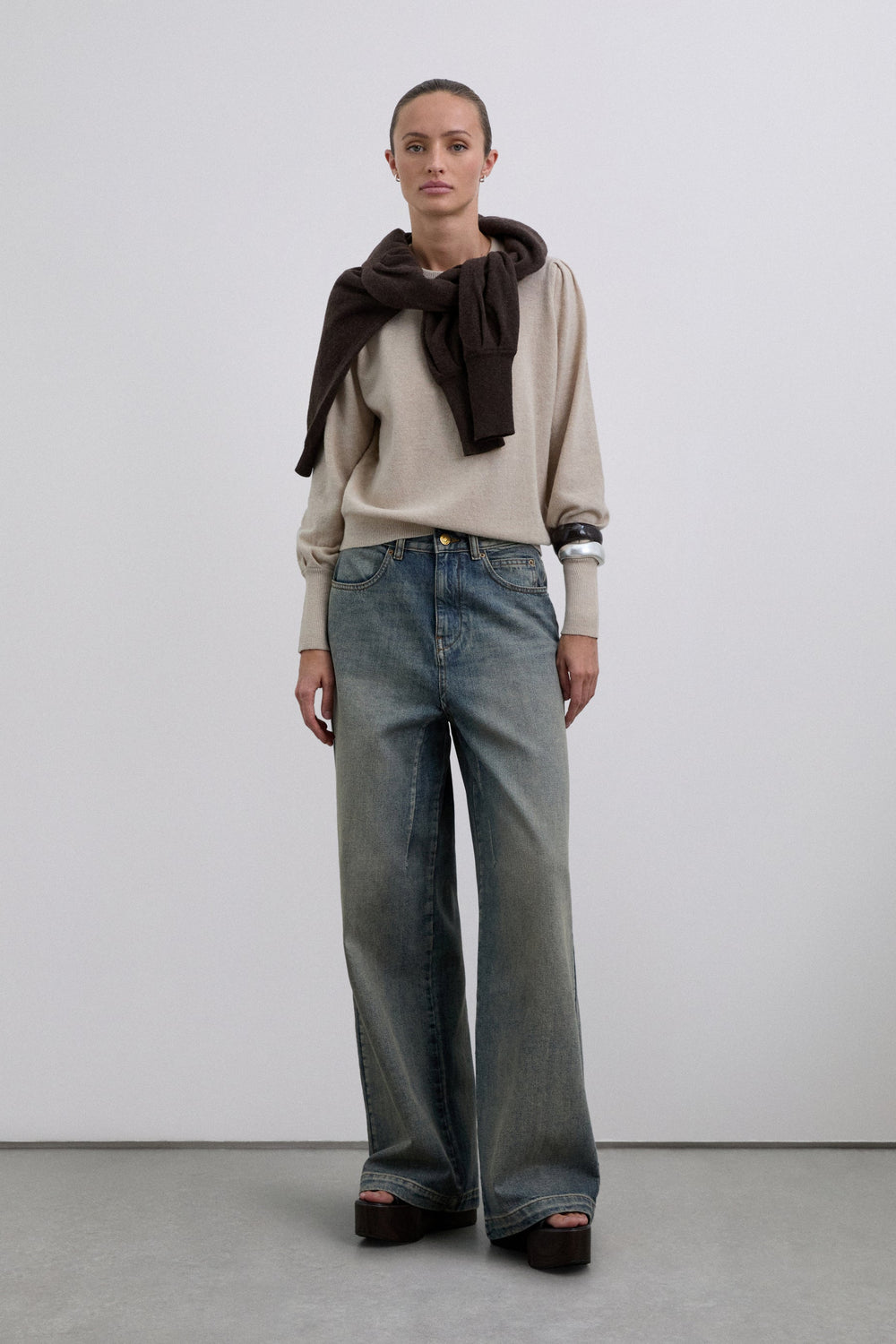 Sweater made of a wool blend. Regular fit. Round neck. Long slightly puffed sleeves with ribbed cuffs.