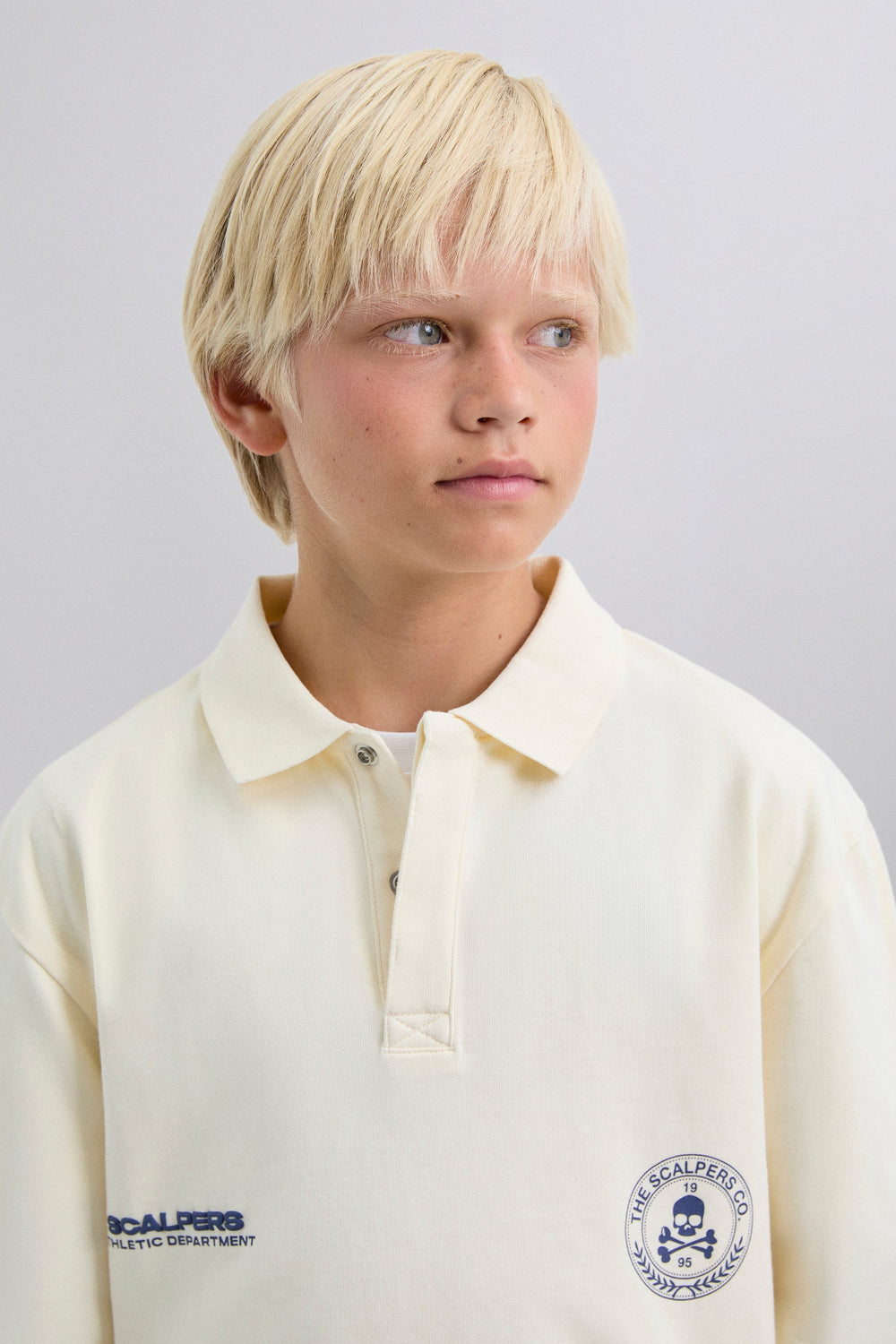 Polo shirt in 100% BCI cotton. Regular fit, classic buttoned collar and long sleeves. Front and back print with embossed logo and skull.