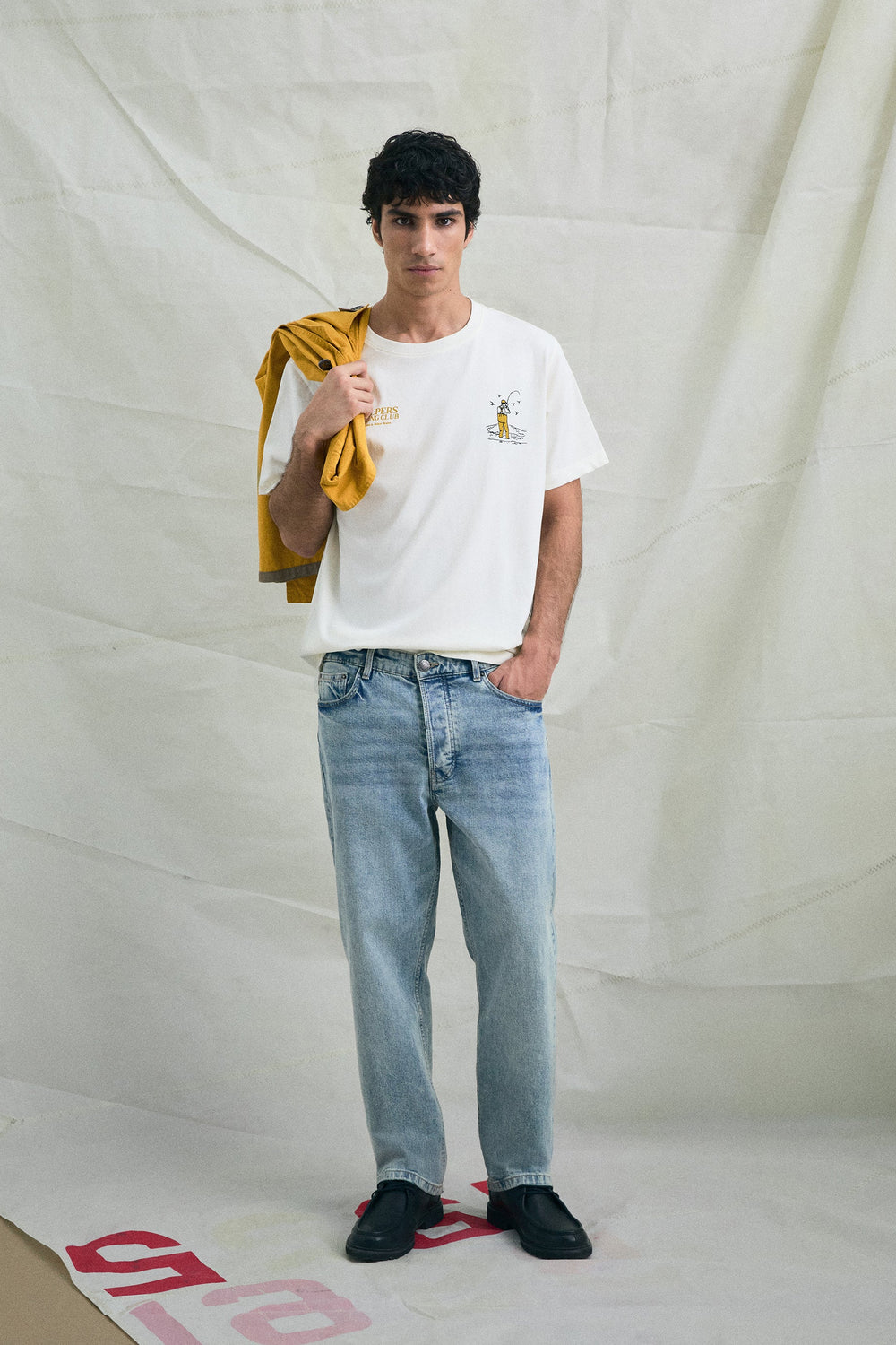 Jeans made of BCI cotton. Button and zip fastening. Two side pockets and back pockets. Belt loops at the waist.