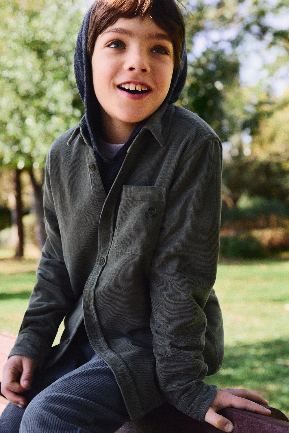 Corduroy shirt made of 100% BCI cotton. Regular Fit. Button fastening. Long sleeves with buttoned cuffs. Matching embroidered skull on the chest.