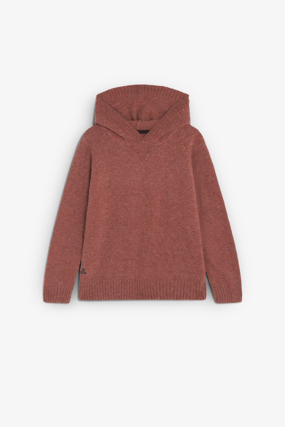 Knit sweater made of a wool blend. Long sleeves. Contrast embroidered skull on the hem.