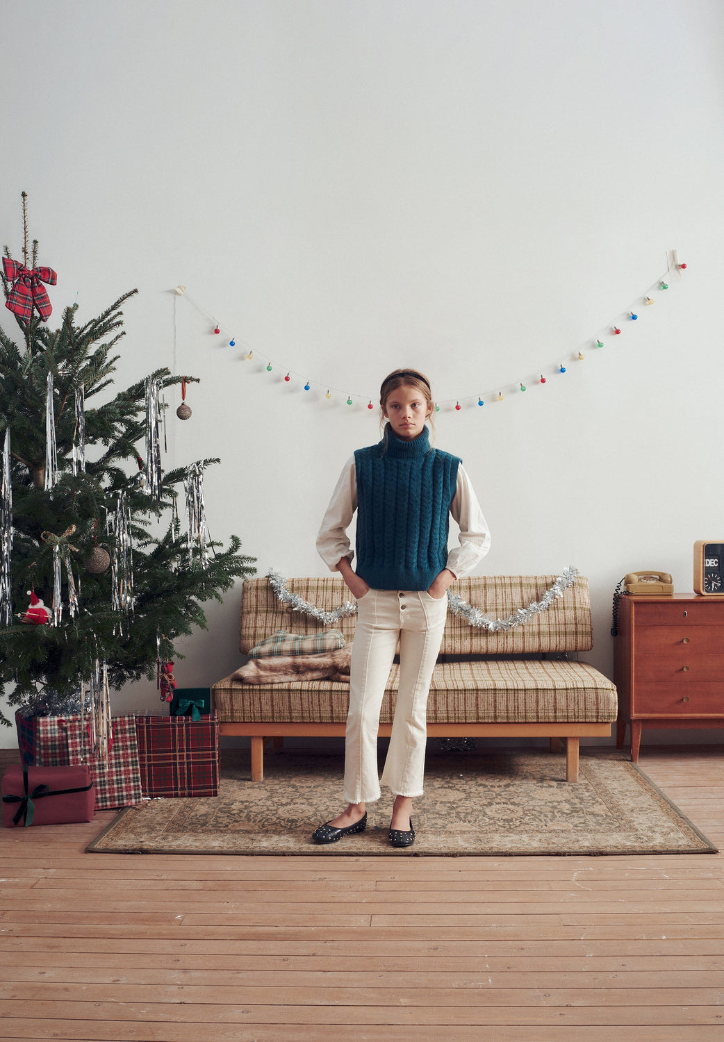 Trousers made of slightly stretchy cotton. Flared. Button fastening with skull logo details. Front pockets and back patch pockets Finished with fringing and front stitching.