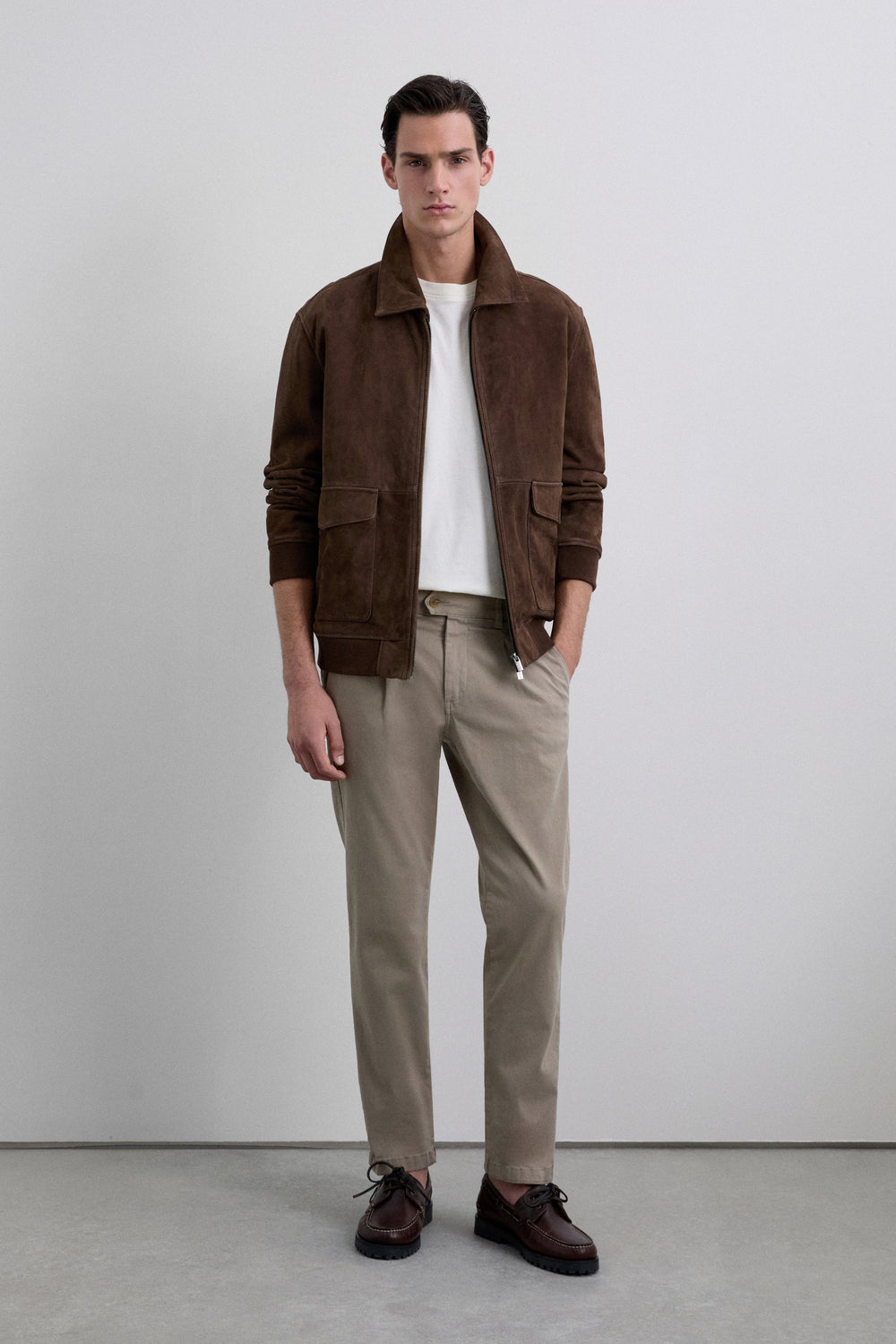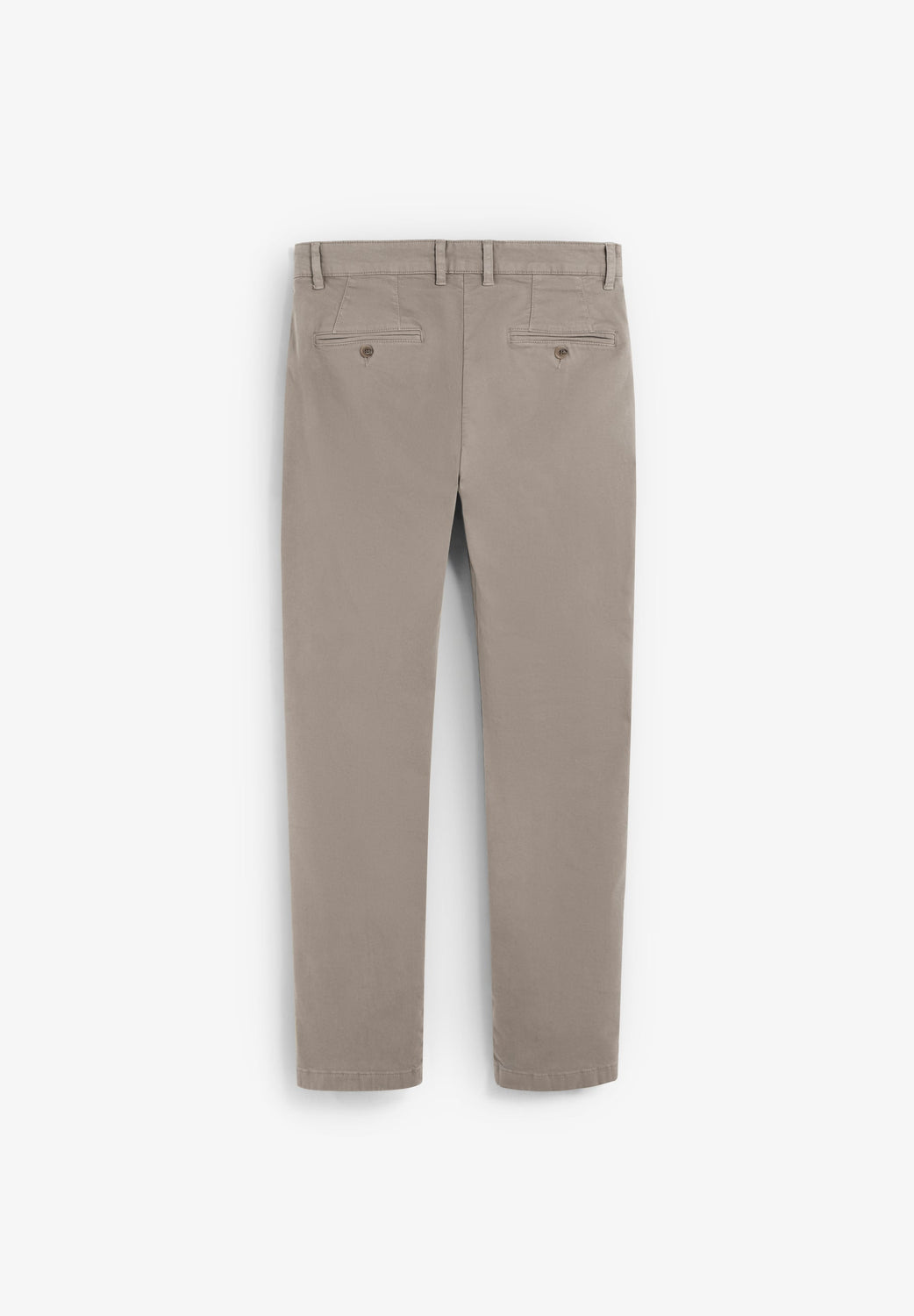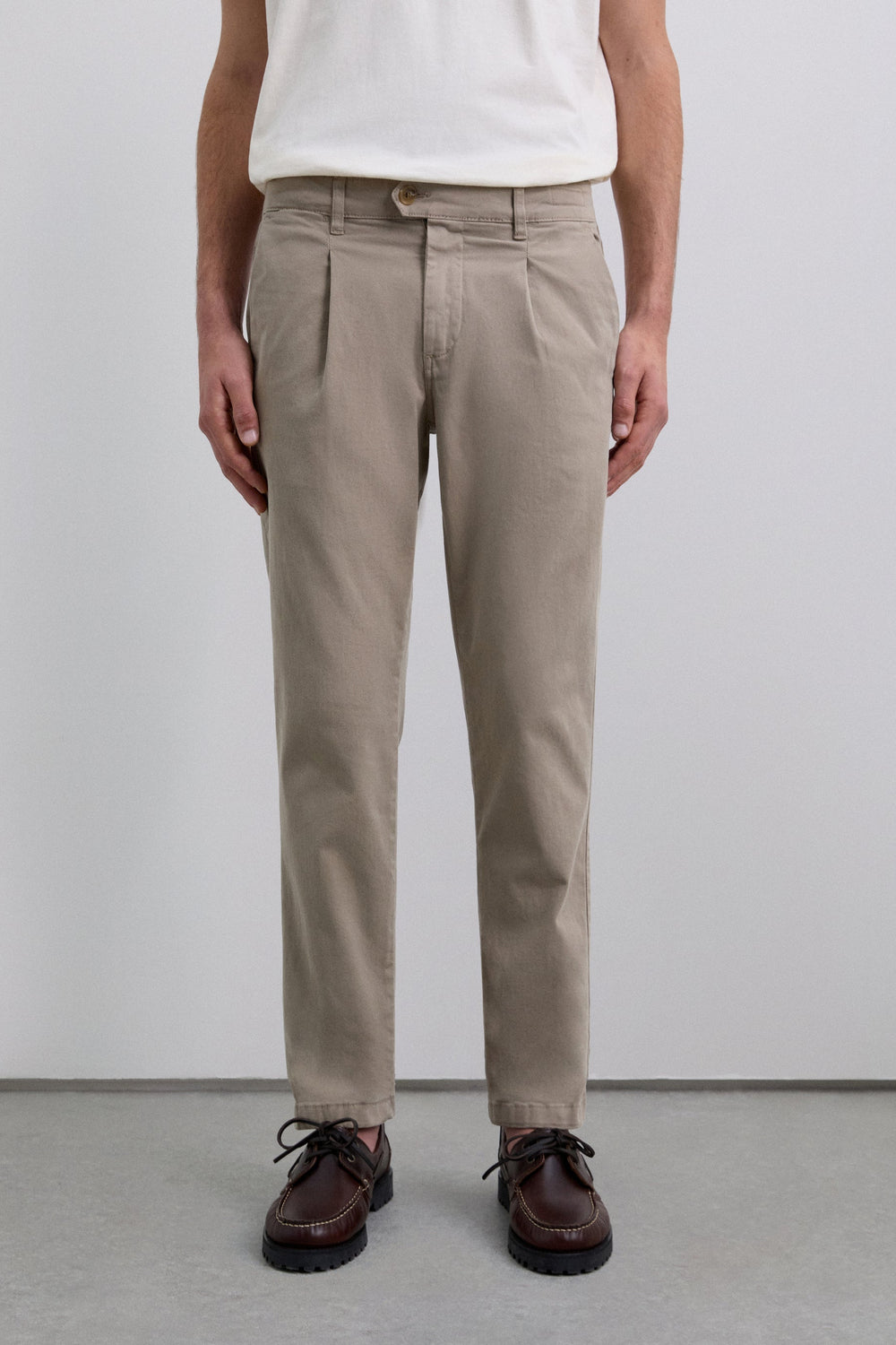 Trousers made of BCI cotton. With darts. Side pockets. Pockets at the back. Front zip and button fastening.