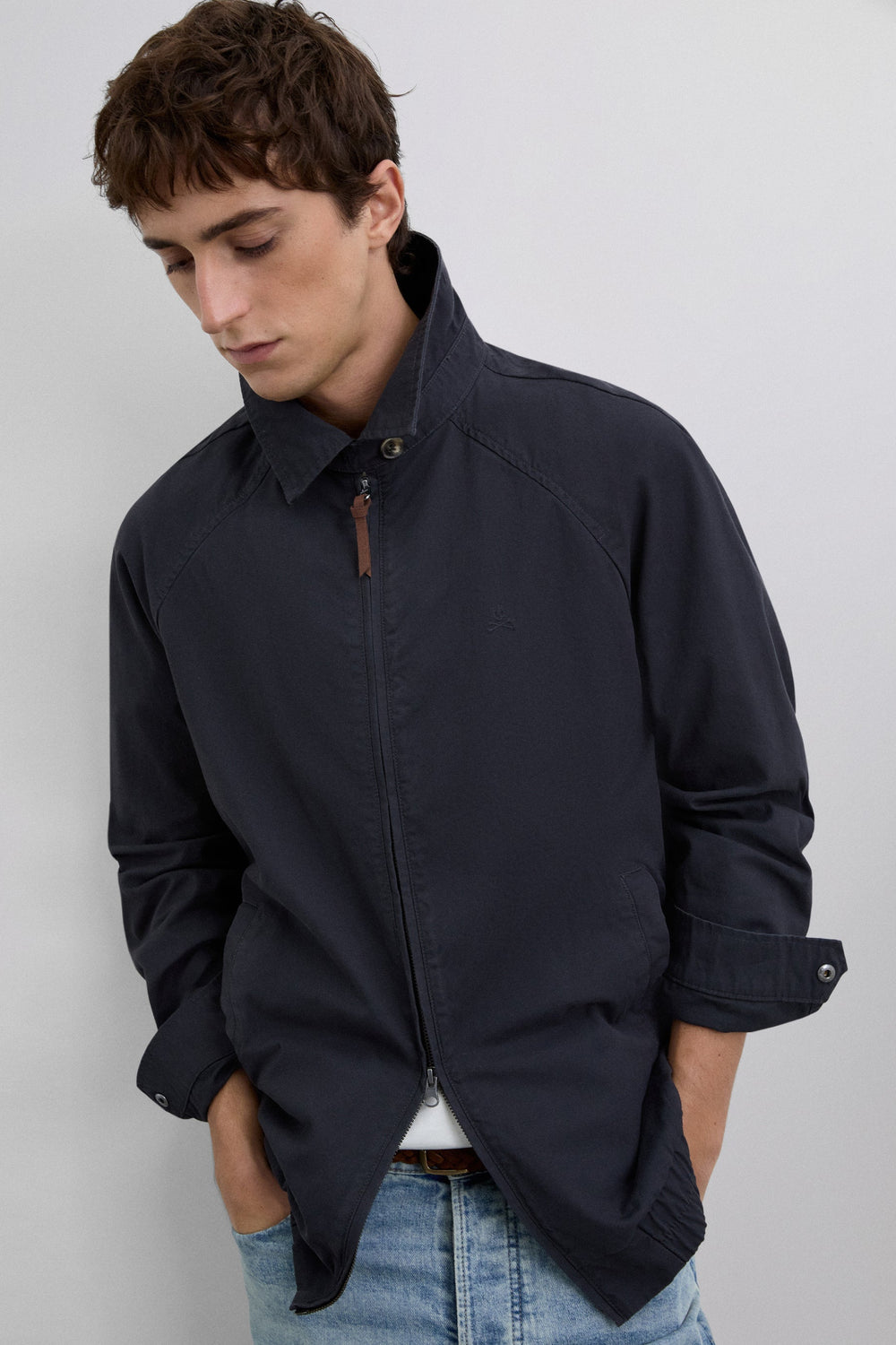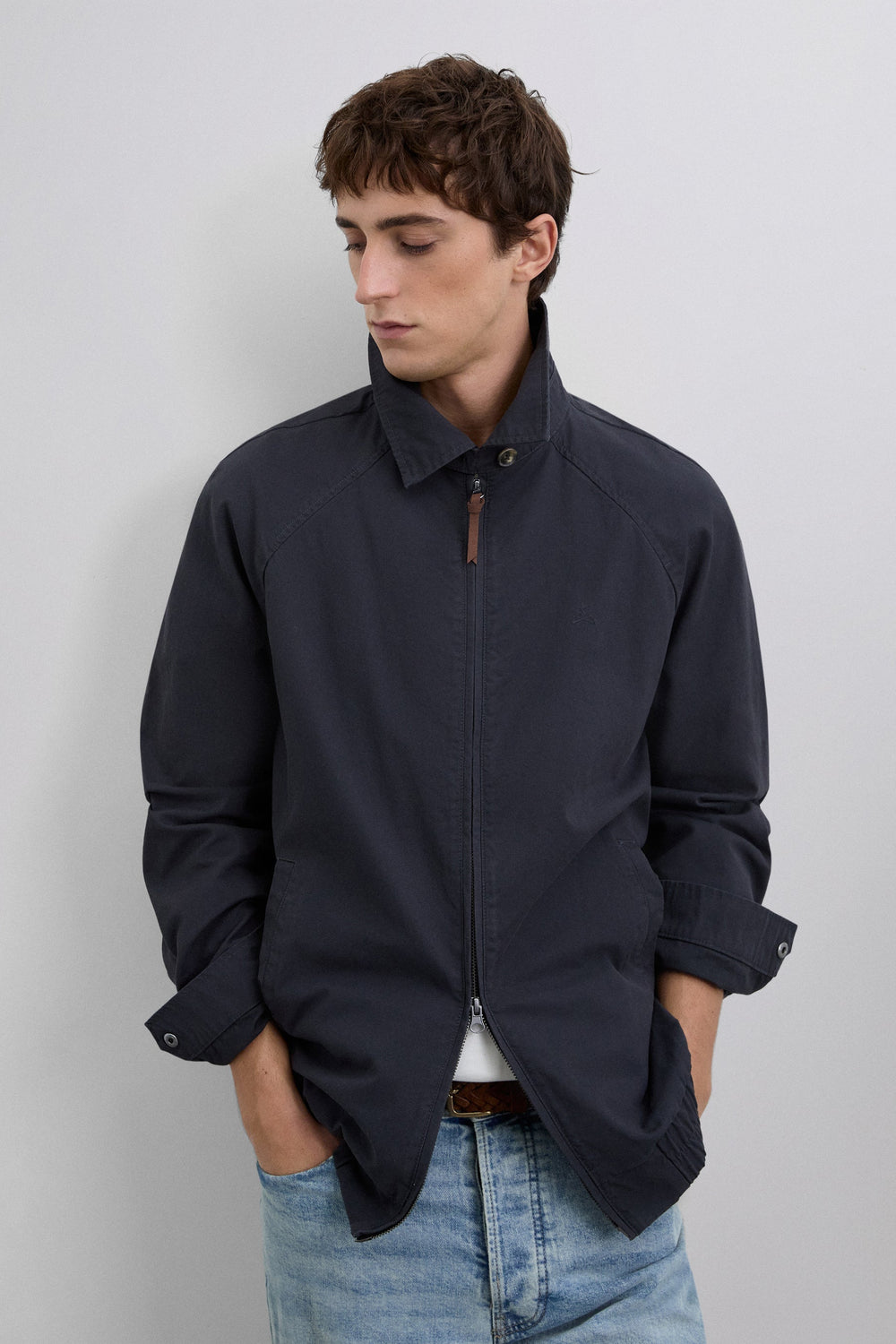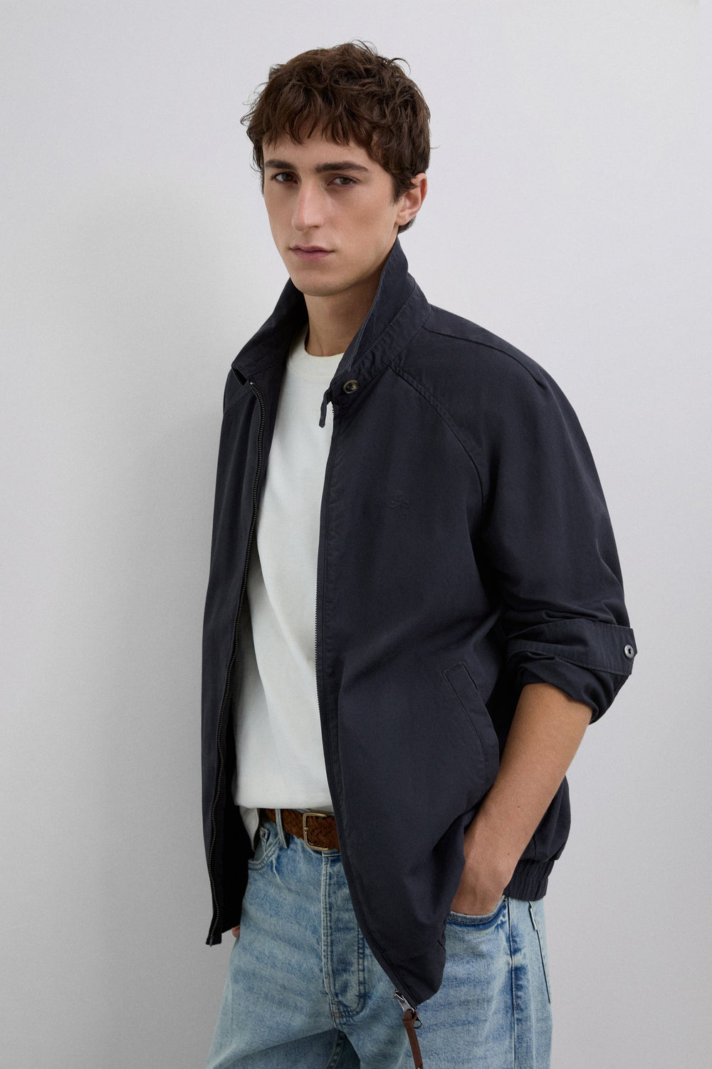 Bomber jacket made of 100% BCI cotton. Fitted. Two-way zip. Ribbed collar, cuffs and waistband. Two front pockets. 100% BCI cotton lining. Embroidered logo.
