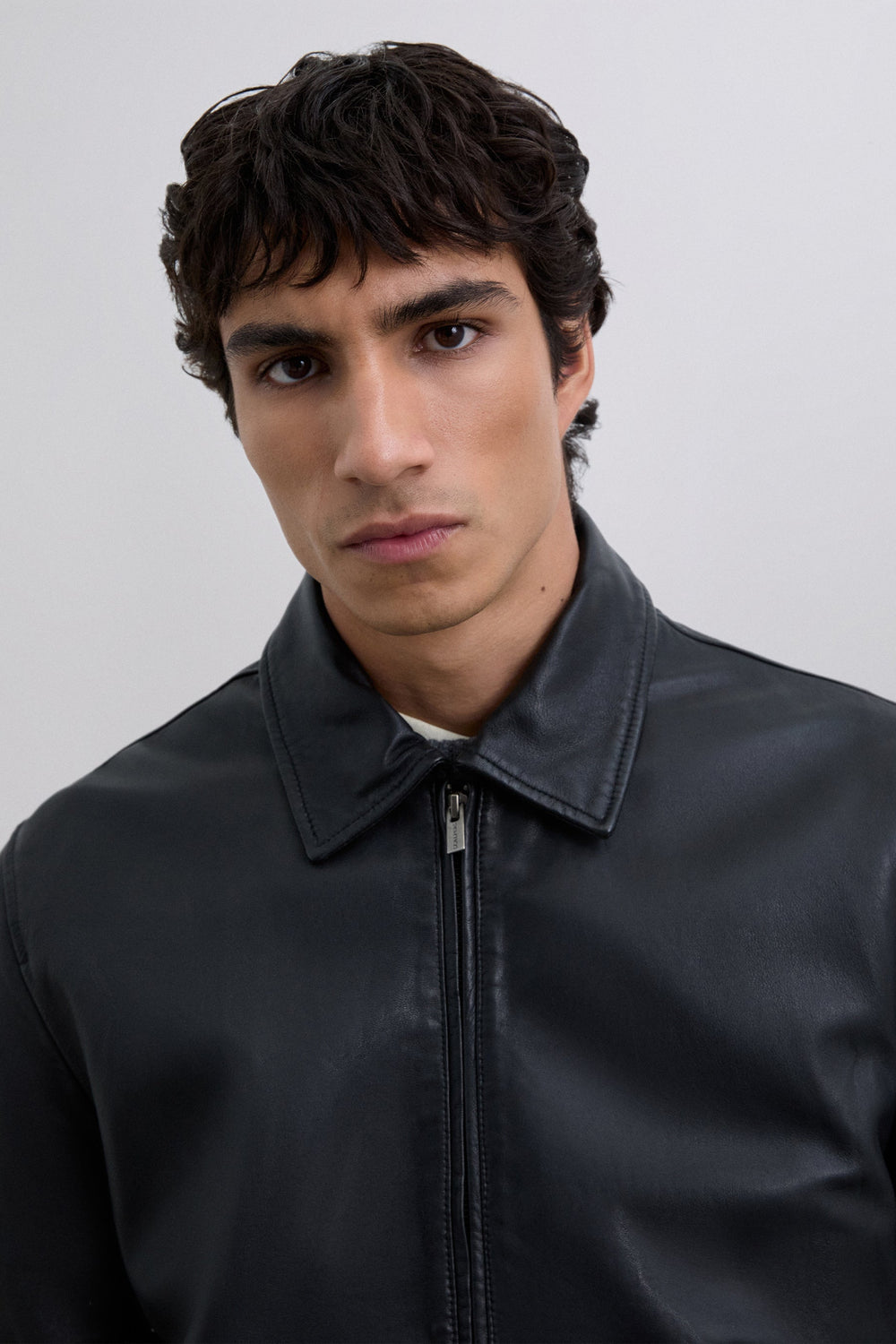 Jacket made of 100% leather. Shirt collar. Long sleeves. Double zip fastening. Two front pockets. Buttoned cuffs. Embroidered logo and skull details on the inside.